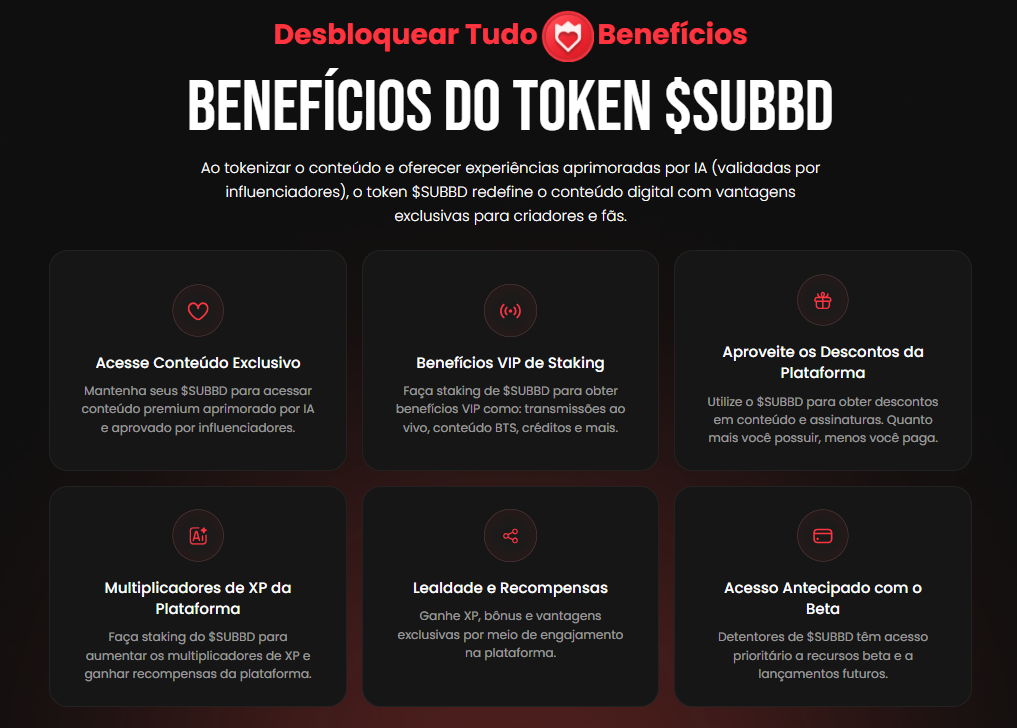 O diferencial do SUBBD está em sua proposta de entregar autonomia total aos criadores, sem depender de grandes plataformas. Entre os recursos oferecidos estão assistentes de IA personalizáveis, conteúdos exclusivos e um mecanismo de staking com rendimentos de até 20% ao ano.