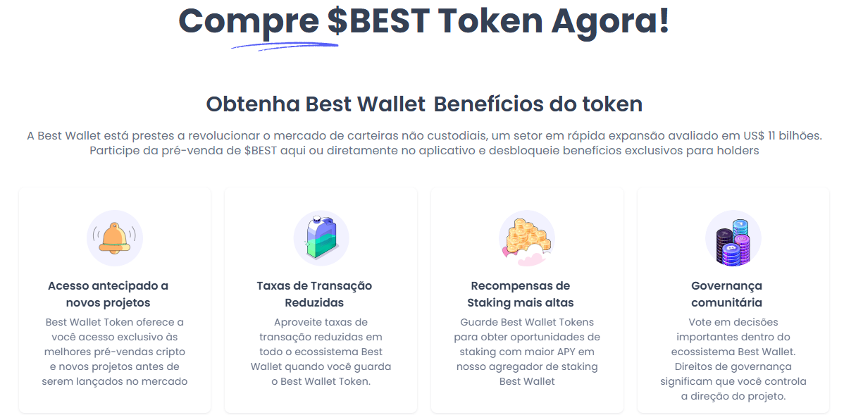 Enquanto o BNB enfrenta desafios técnicos e on-chain, outros projetos ganham espaço. Entre eles está o Best Wallet Token (BEST), ligado ao ecossistema da Best Wallet. Em 2025, a plataforma expandiu sua atuação para além da carteira digital, integrando pré-vendas exclusivas diretamente em seu produto.