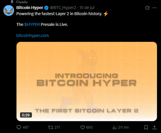 Um deles é o Bitcoin Hyper ($HYPER), com sua pré-venda ultrapassando US$ 28 milhões em captação. O projeto promete entregar uma solução de Camada 2 para a rede Bitcoin, com foco em transações rápidas e baratas.