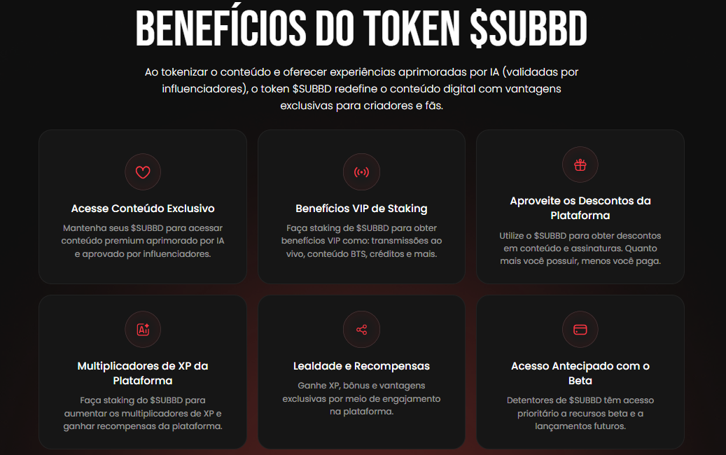 O projeto oferece assistentes de IA personalizáveis, conteúdos exclusivos e um sistema de staking com rendimentos de até 20% ao ano. Com isso, criadores podem transformar sua base de seguidores em uma fonte direta de receita, sem depender de plataformas centralizadas.