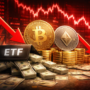 Os ETFs de Ether não escaparam. O fundo da Fidelity (FETH) viu saídas de US$ 37,1 milhões, enquanto o Grayscale (ETHE) perdeu mais US$ 8,9 milhões. É o primeiro fluxo negativo consolidado para o ETH desde 9 de março, sugerindo que a aversão ao risco foi generalizada.