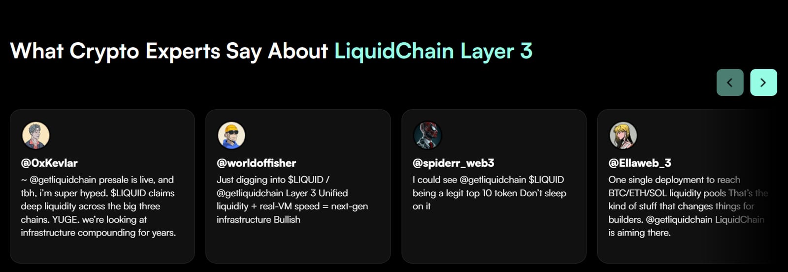 Com a pré-venda agora se aproximando de US$ 1 milhão, o $LIQUID está disponível a um preço inicial com desconto. Assim que o token for lançado nas principais exchanges, a demanda poderá aumentar significativamente à medida que a Layer 3 entrar em operação e atrair desenvolvedores e liquidez.